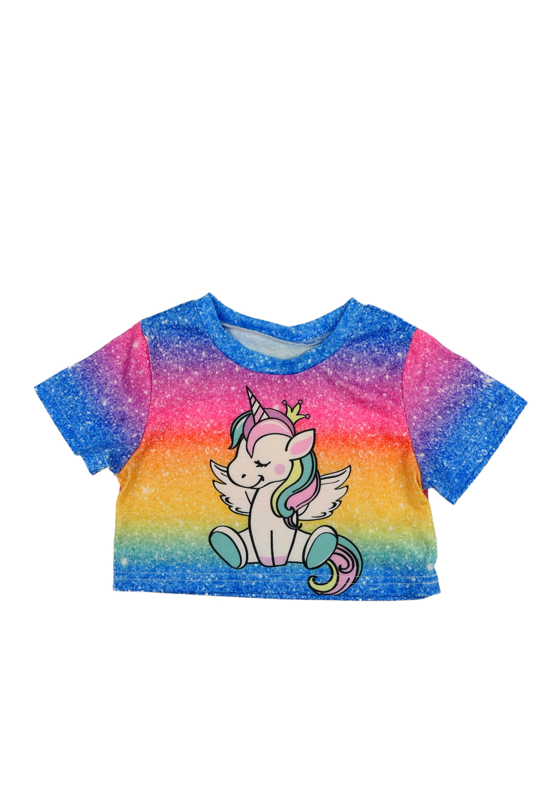 Barevně batikované crop triko s jednorožci