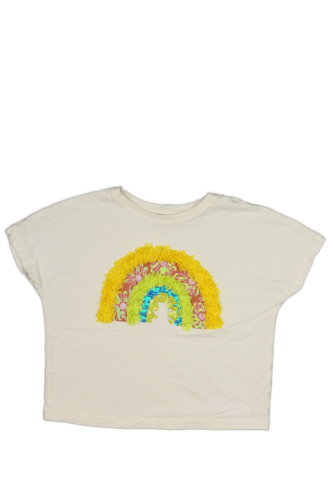 Bílé crop triko s duhou Tu (109 Kč)
