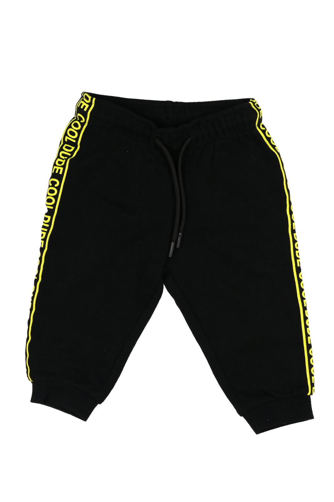 Černé tepláky se žlutými nápisy
