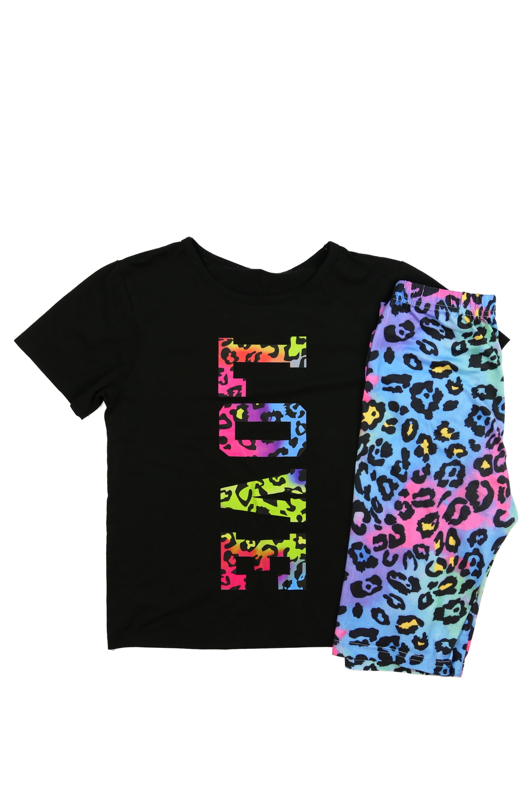 Černé triko a barevné kraťasy