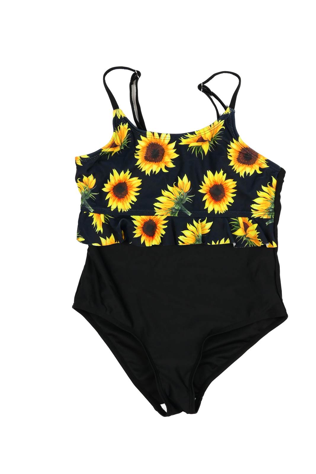 Černé triko s volánky a slunečnicemi