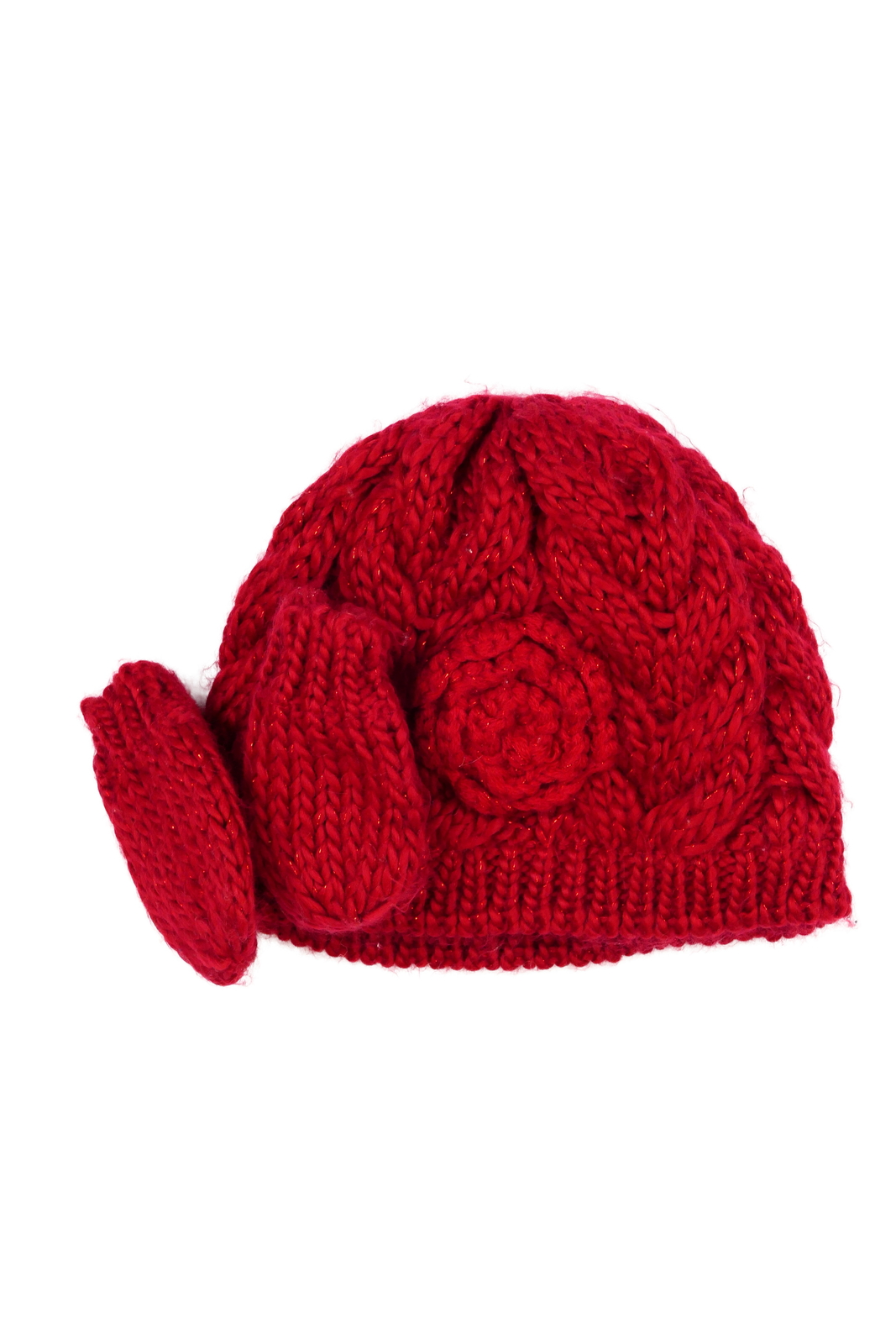 Červená pletená čepice s palčáky George