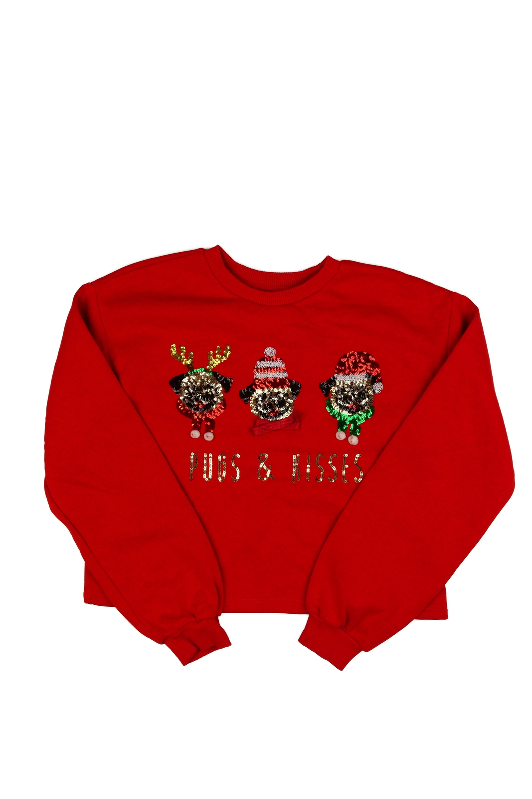 Červená vánoční crop mikina se psy (129 Kč)