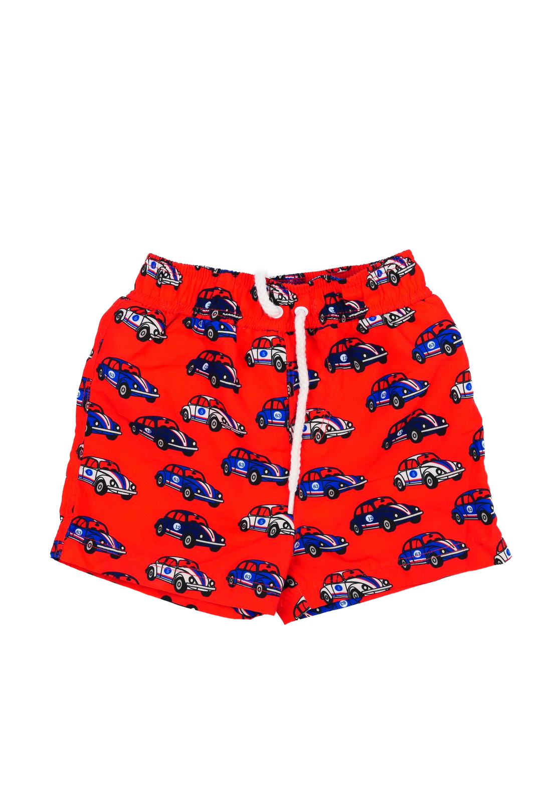 Červené plážové kraťasy s auty