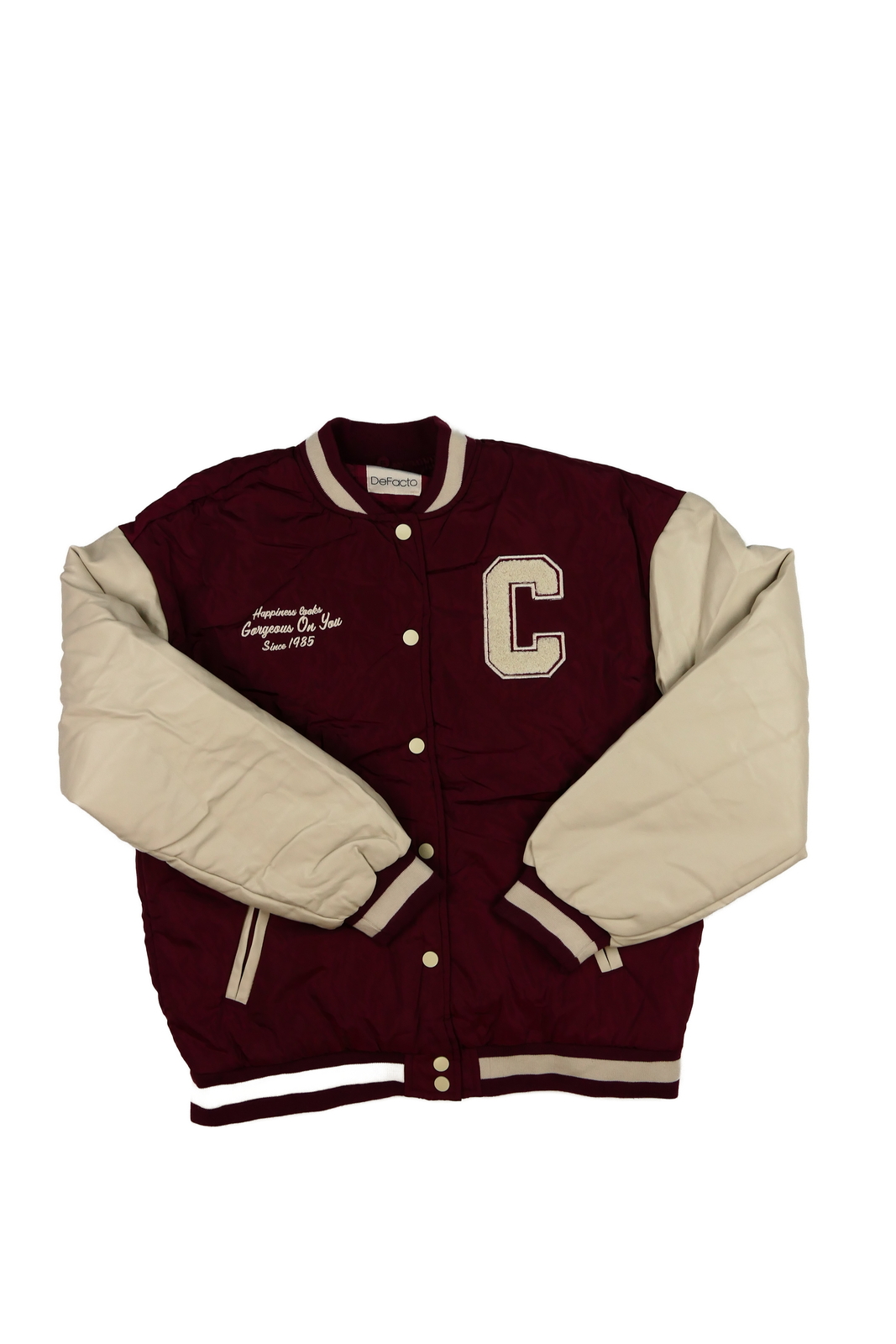 Červeno-krémová bunda s koženkovými rukávy