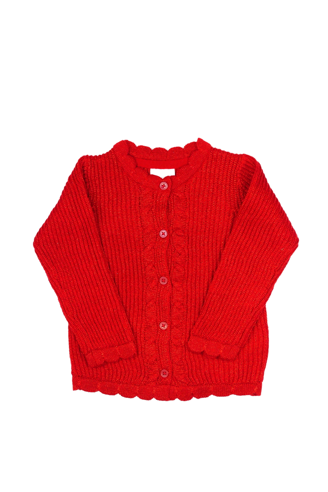 Červený lesklý propínací svetřík (89 Kč)