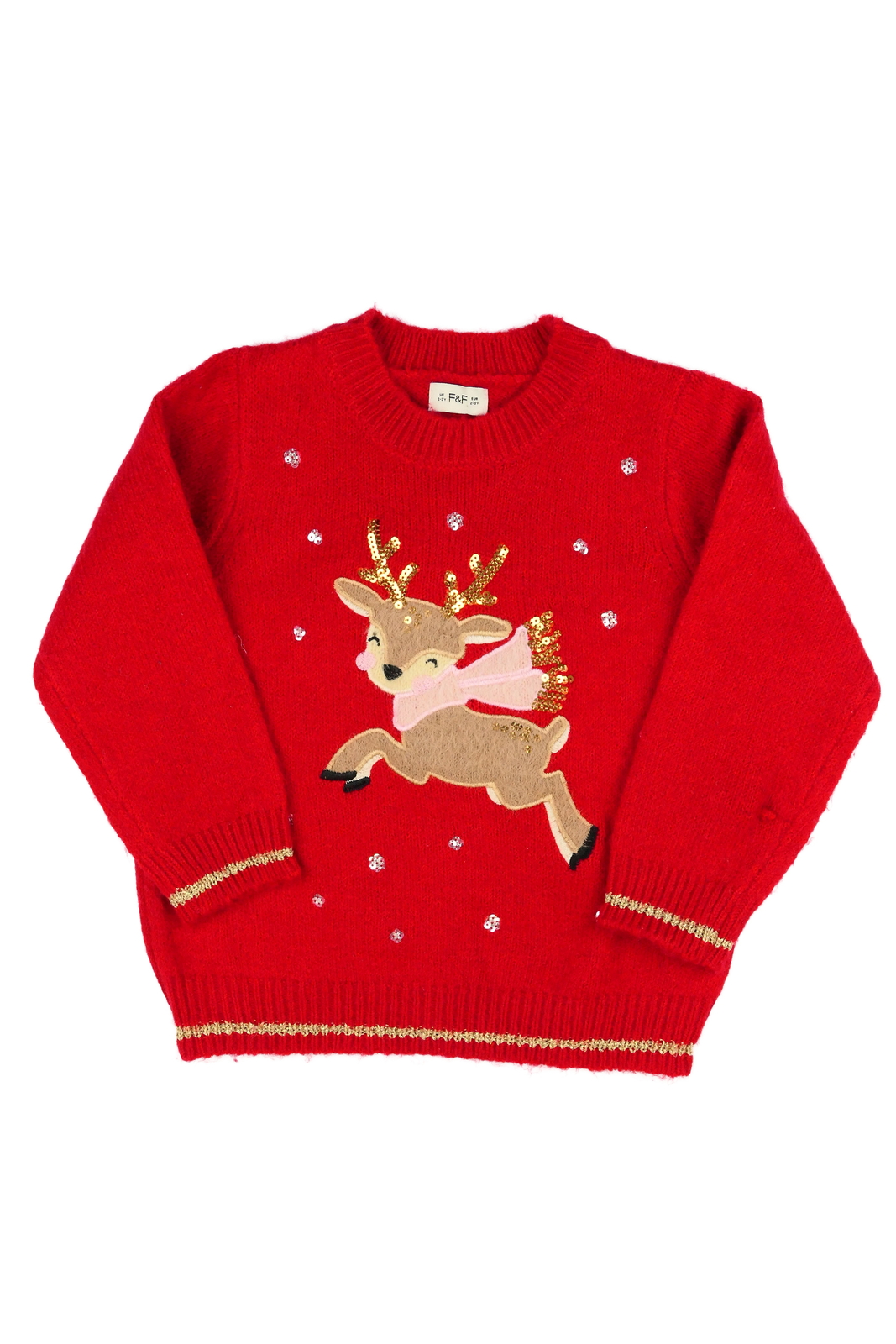 Červený vánoční svetr s jelínkem F&F