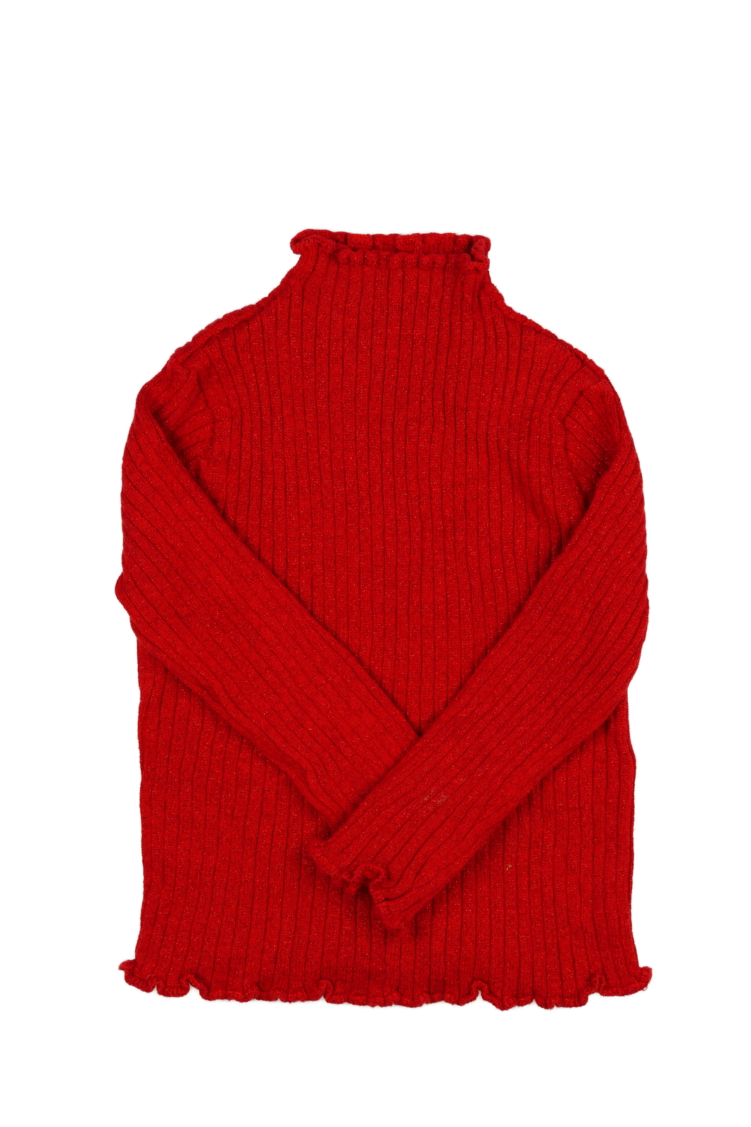 Červený žebrovaný svetr s metalickým vláknem Tu