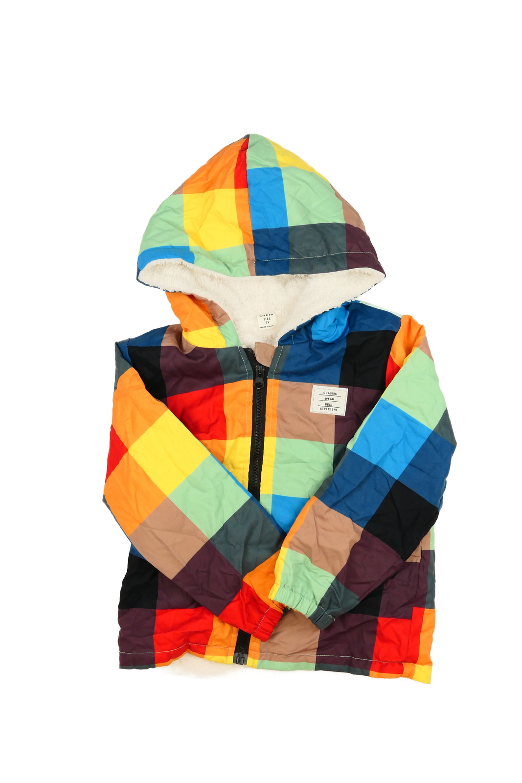 Kostkovaná barevná bunda s vnitřním chlupem (169 Kč)