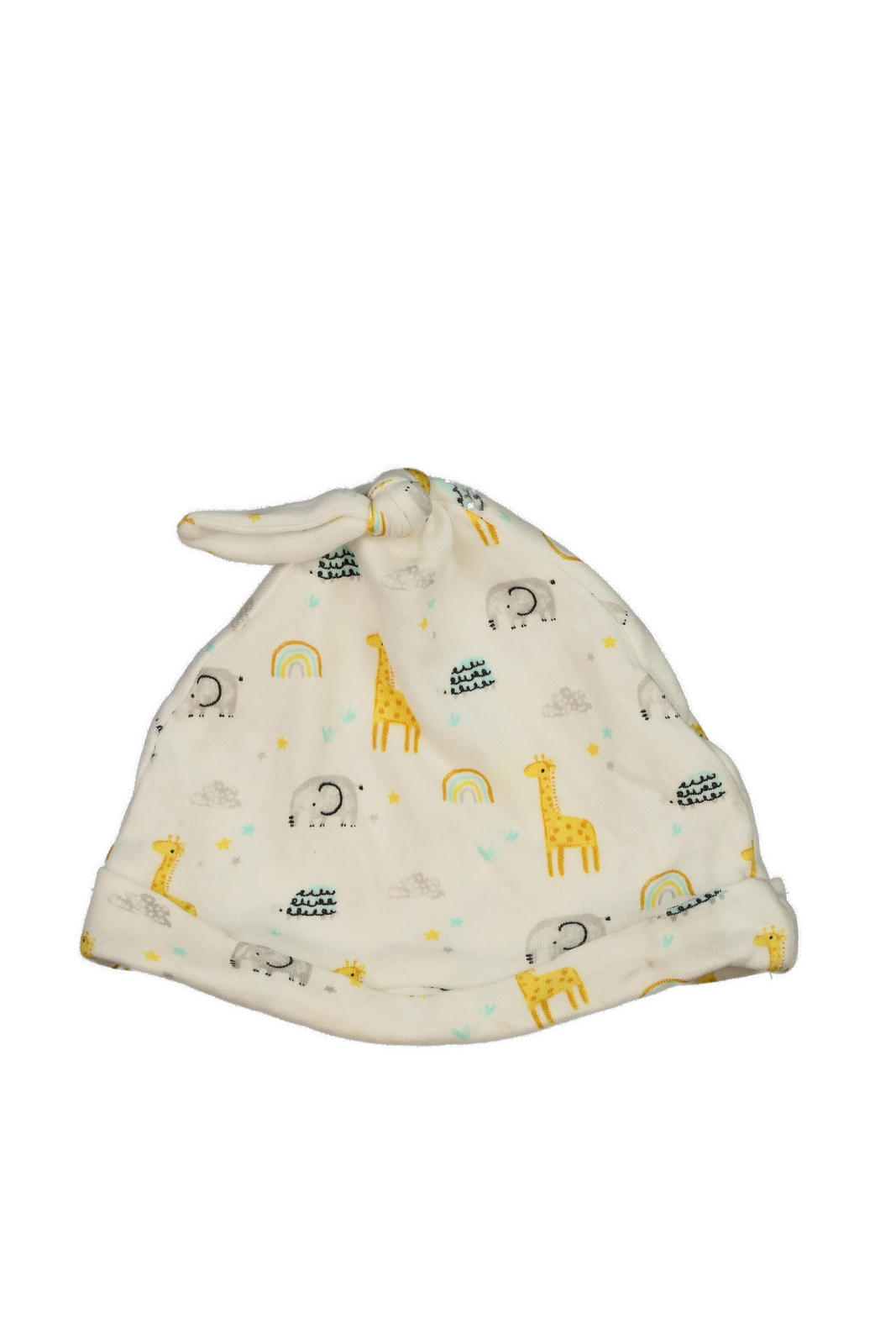 Krémová bavlněná čepička se zvířátky (35 Kč)