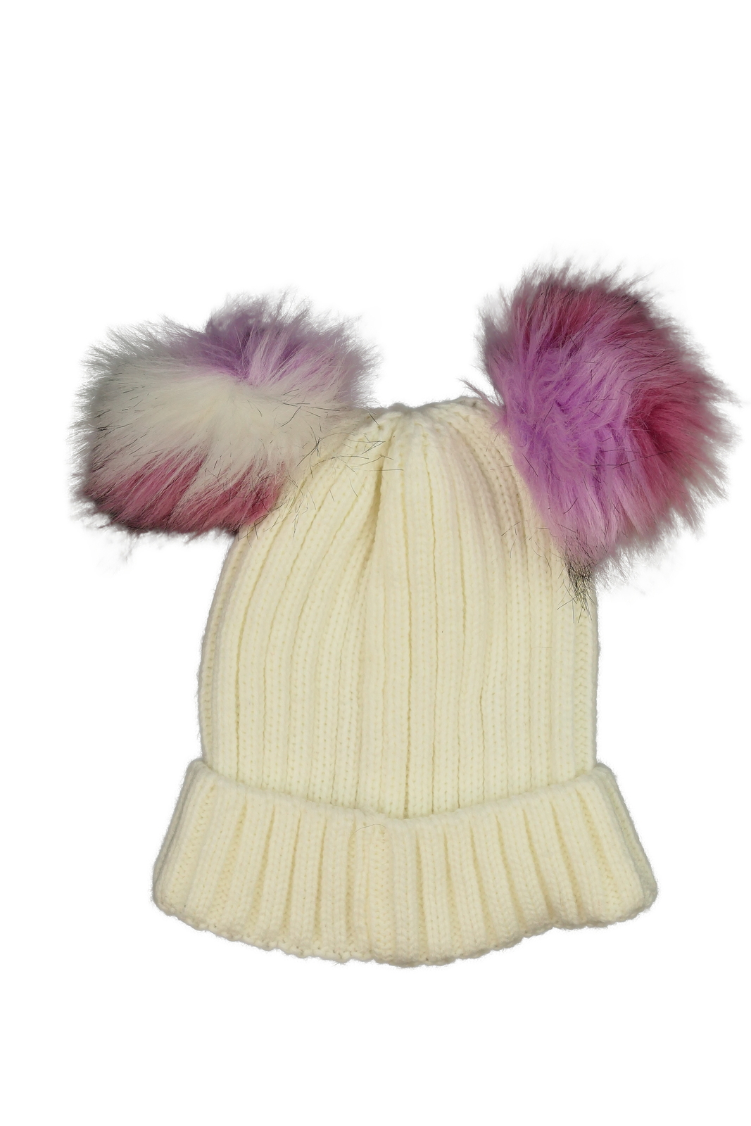 Krémová čepice s bambulemi