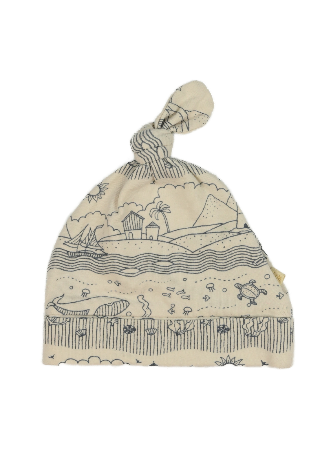 Krémová čepička s modrými obrázky bavlněná