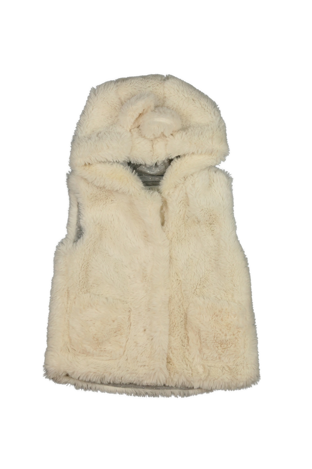 Krémová chlupatá vesta s oušky (229 Kč)
