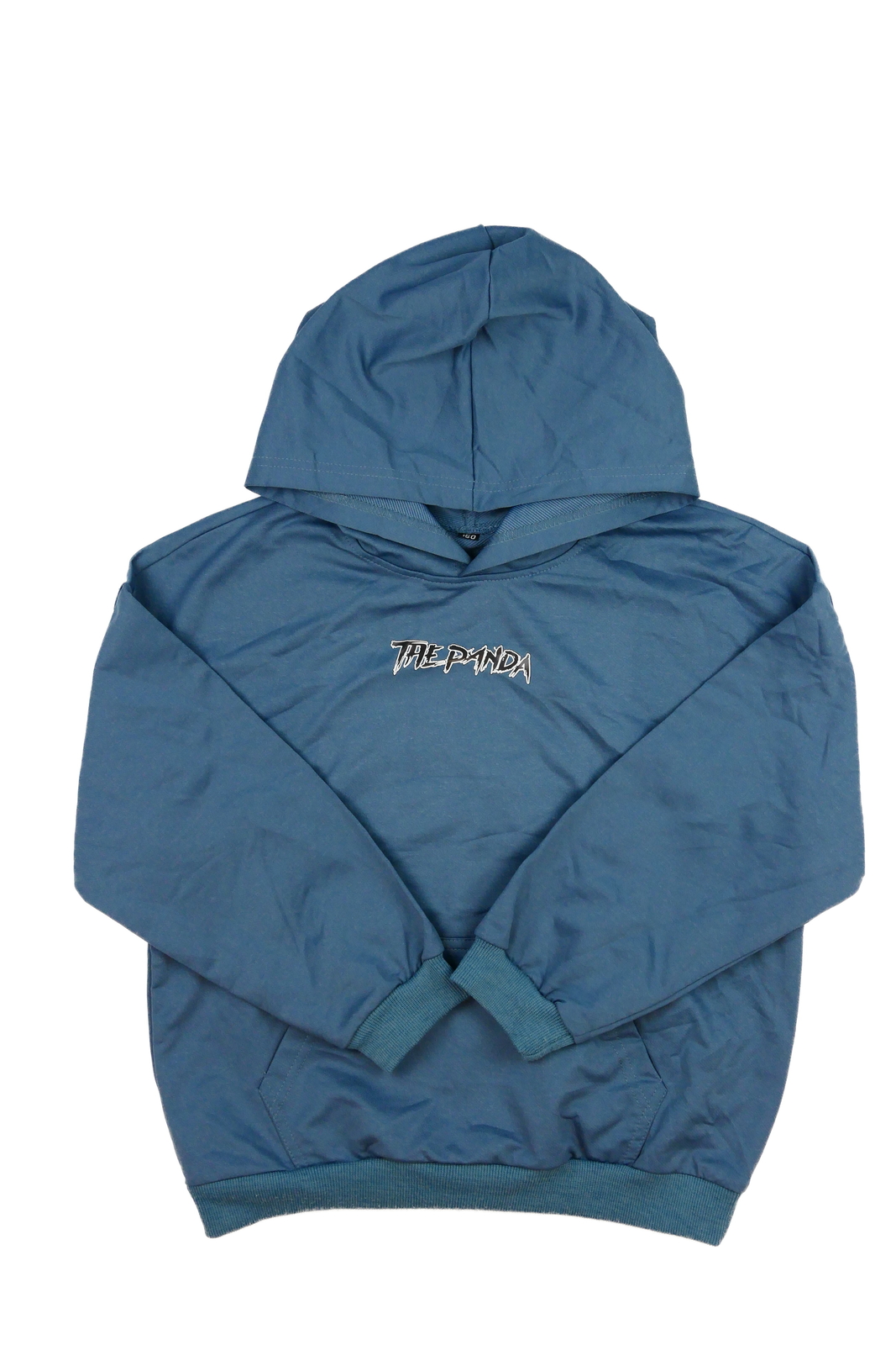 Modrá slabší mikina s obrázkem na zádech