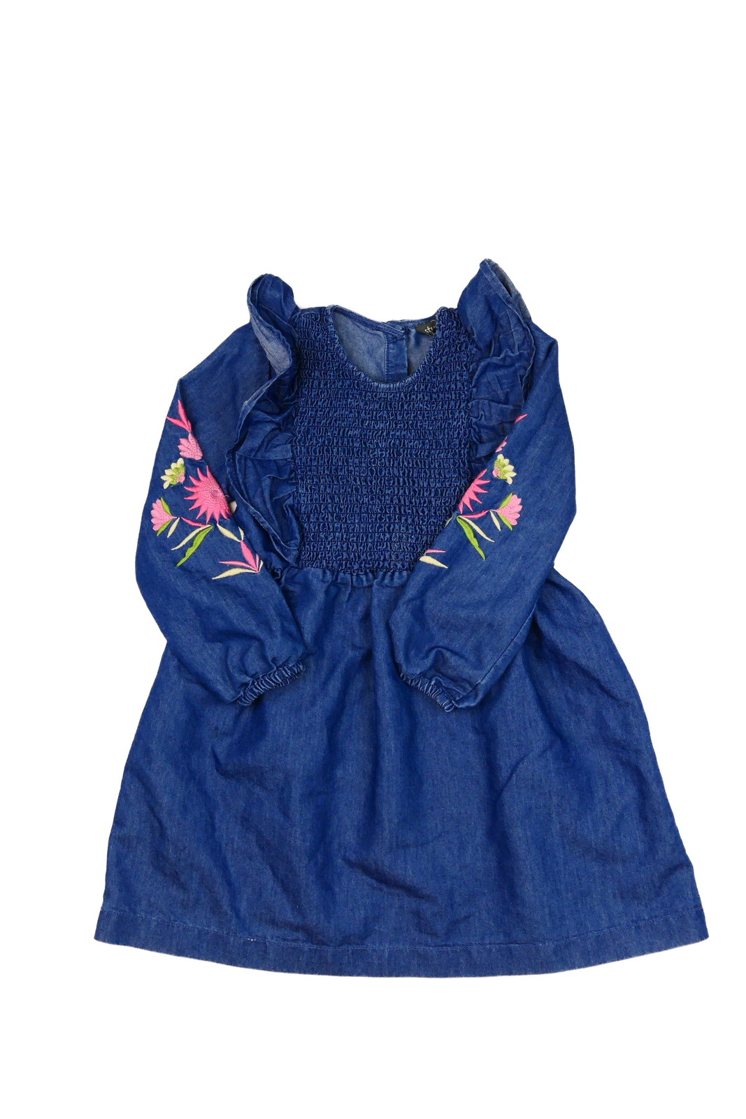 Modré šaty s volánky a výšivkami (129 Kč)