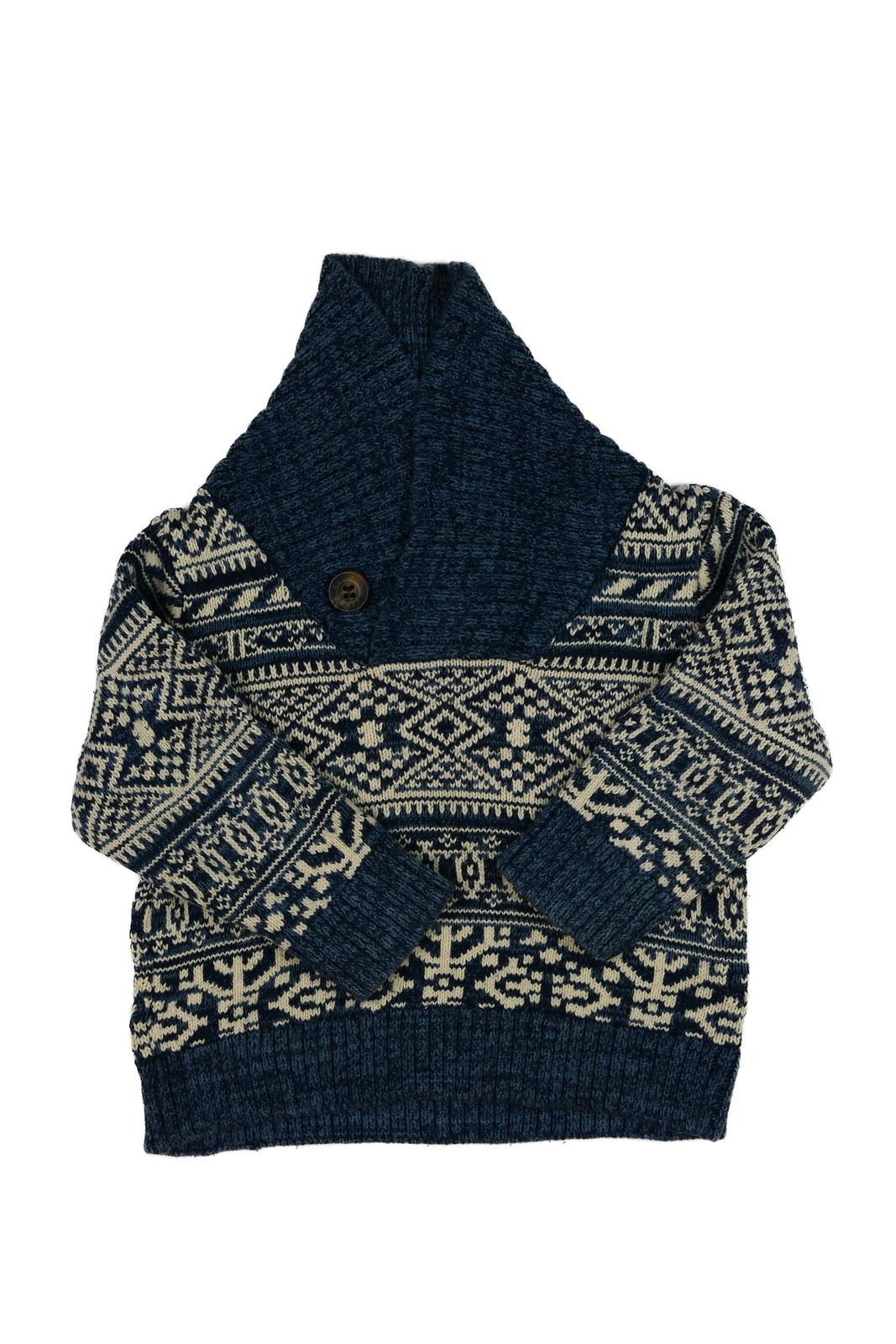 Modro-bílý vzorovaný svetr