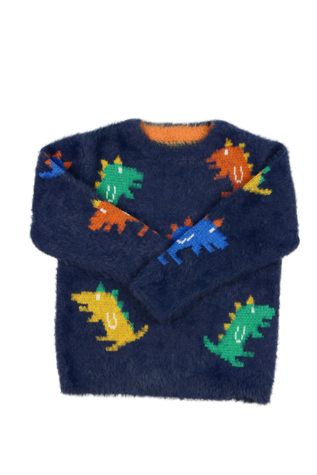 Modrý žinylkový svetr s dinosaurem George (89 Kč)
