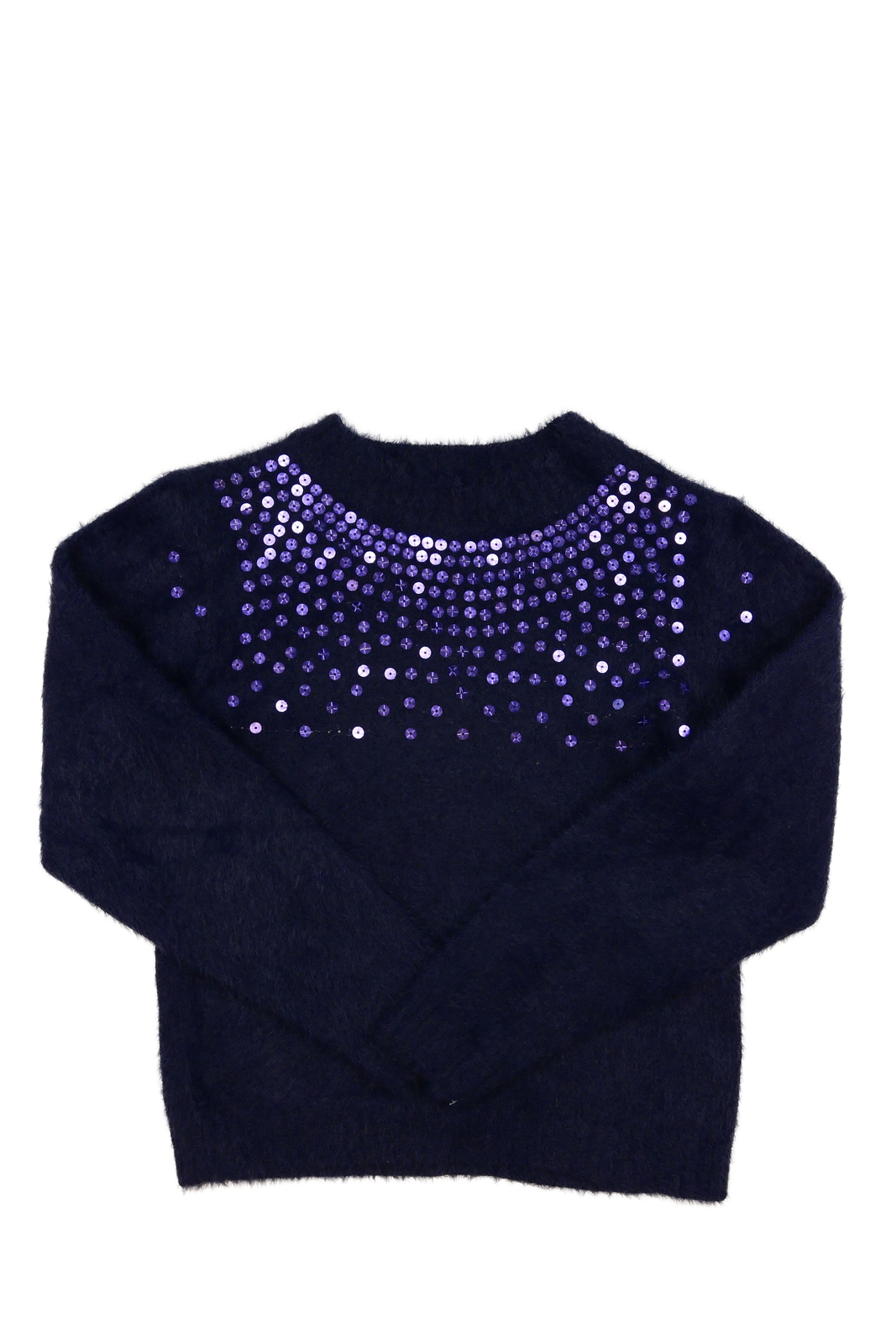 Modrý žinylkový svetr s flitry M&Co (159 Kč)