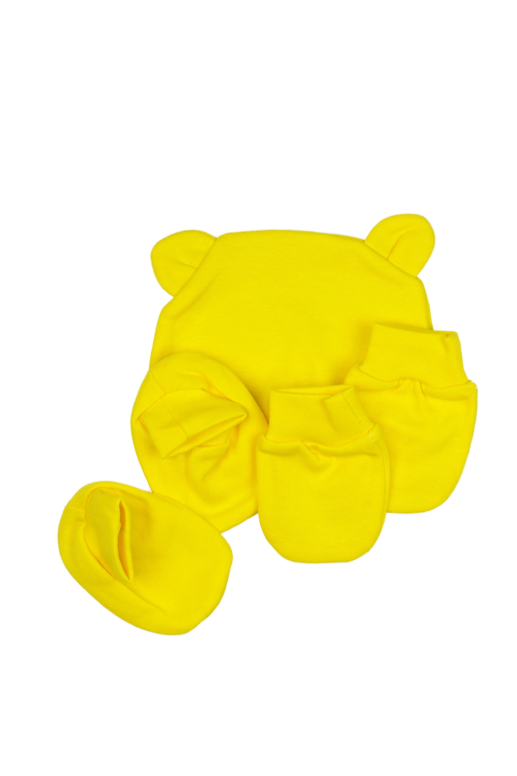 Nová žlutá čepice, bačkůrky a rukavičky
