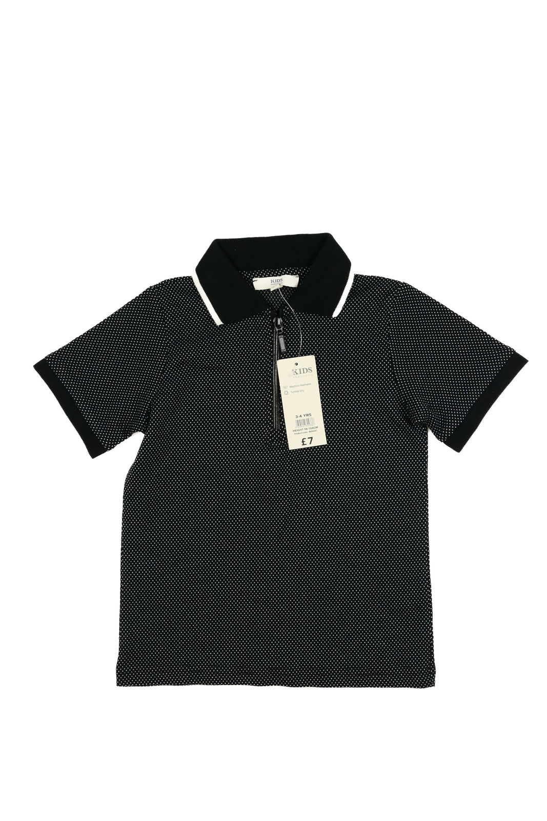 Nové černé vzorované triko s límečkem (89 Kč)