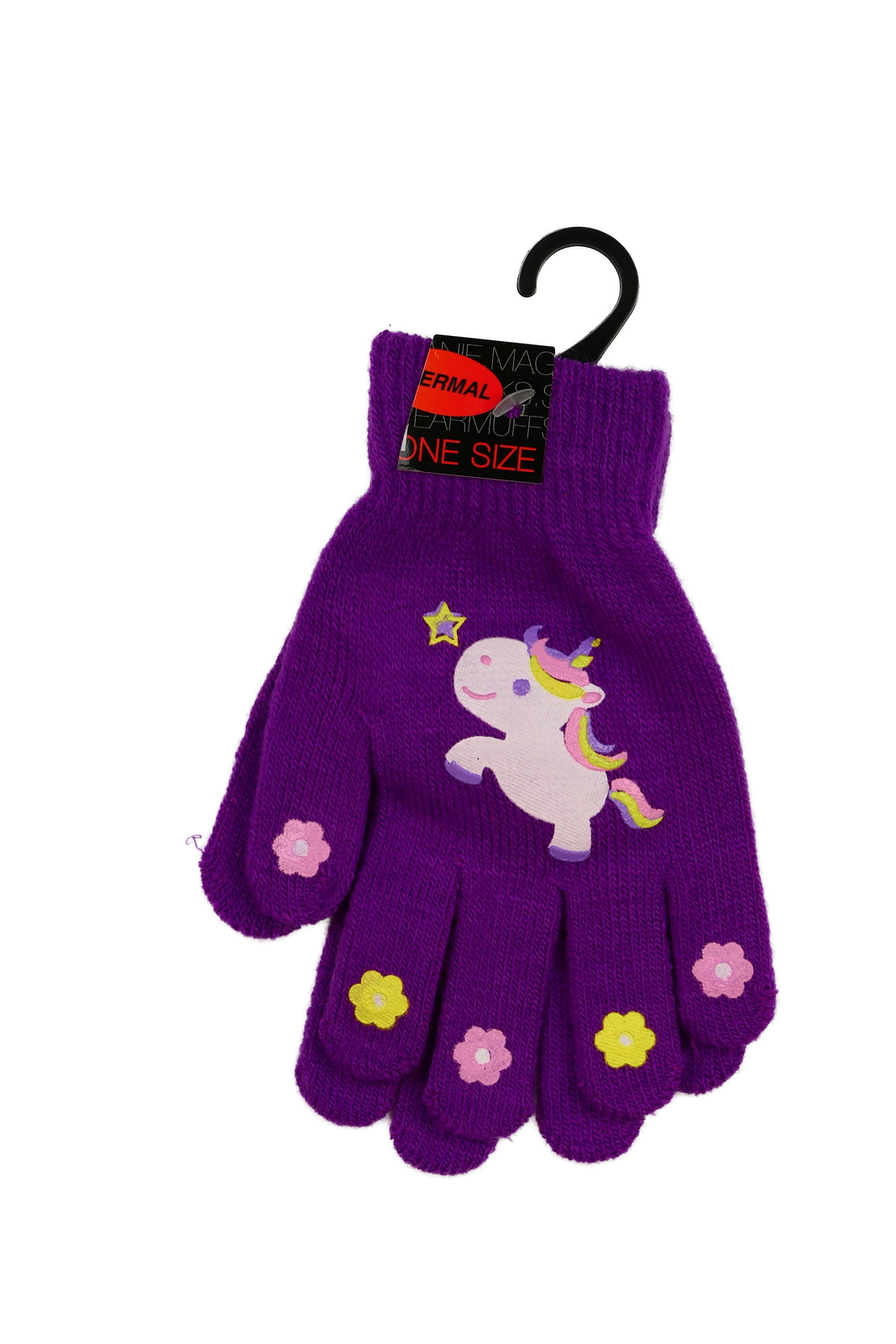 Nové fialové rukavice s jednorožcem (45 Kč)