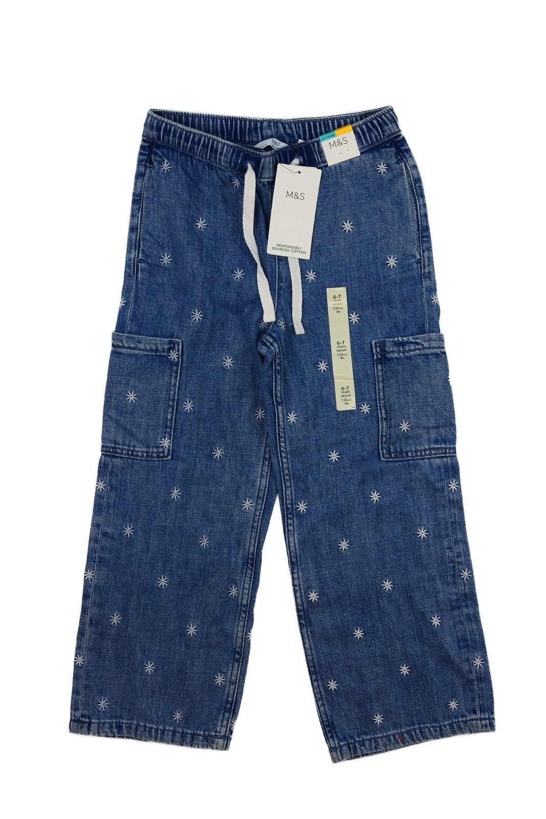 Nové modré rifle s květinami M&S