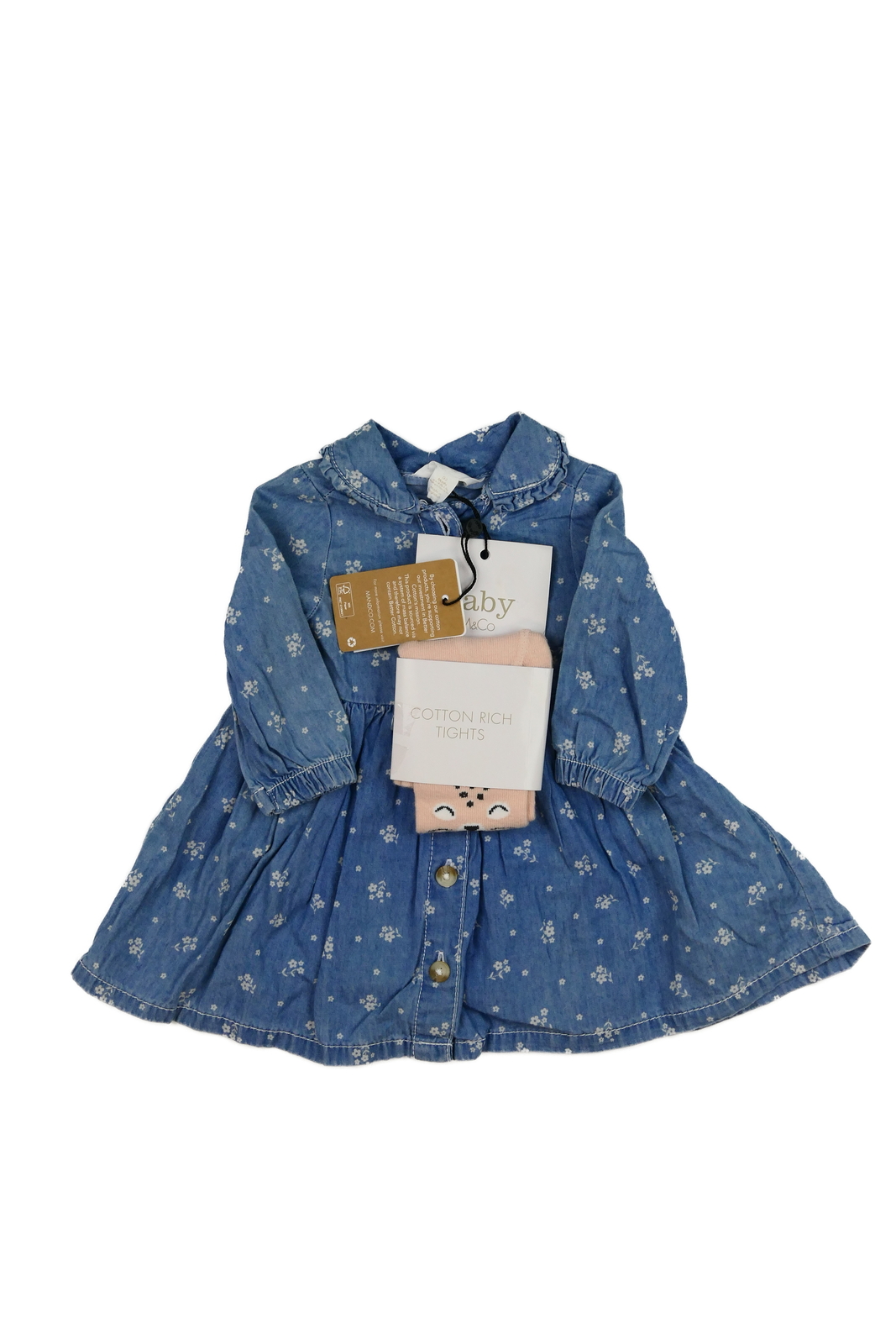 Nové modré šaty a růžové punčocháče M&Co (149 Kč)