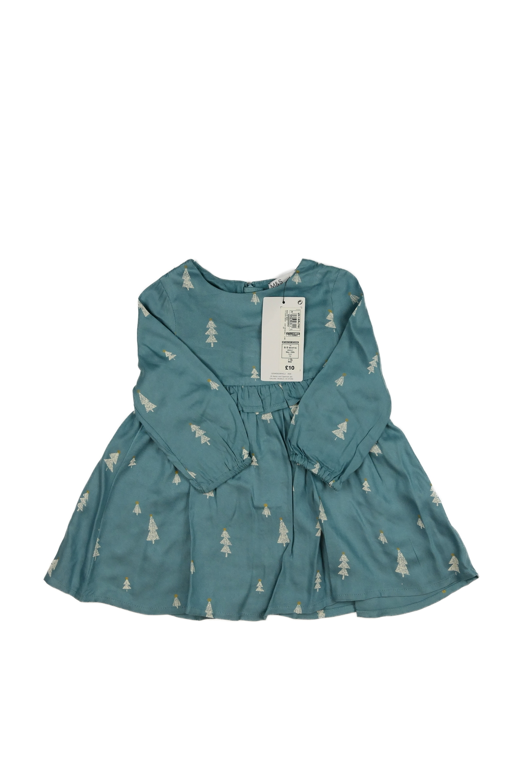 Nové modré šaty se stromky a volánky M&S (89 Kč)