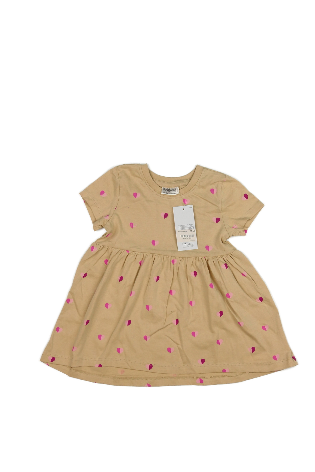 Nové světle hnědé šaty se srdíčky (60 Kč)