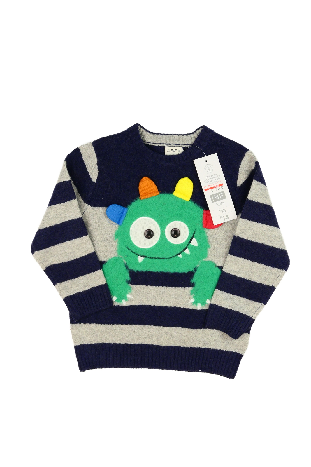 Nový modro-šedý svetr s příšerkou F&F (89 Kč)