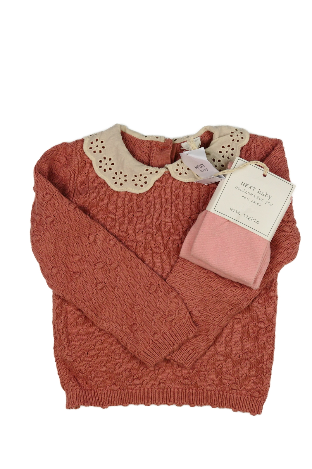 Nový růžový svetr a punčocháče Next
