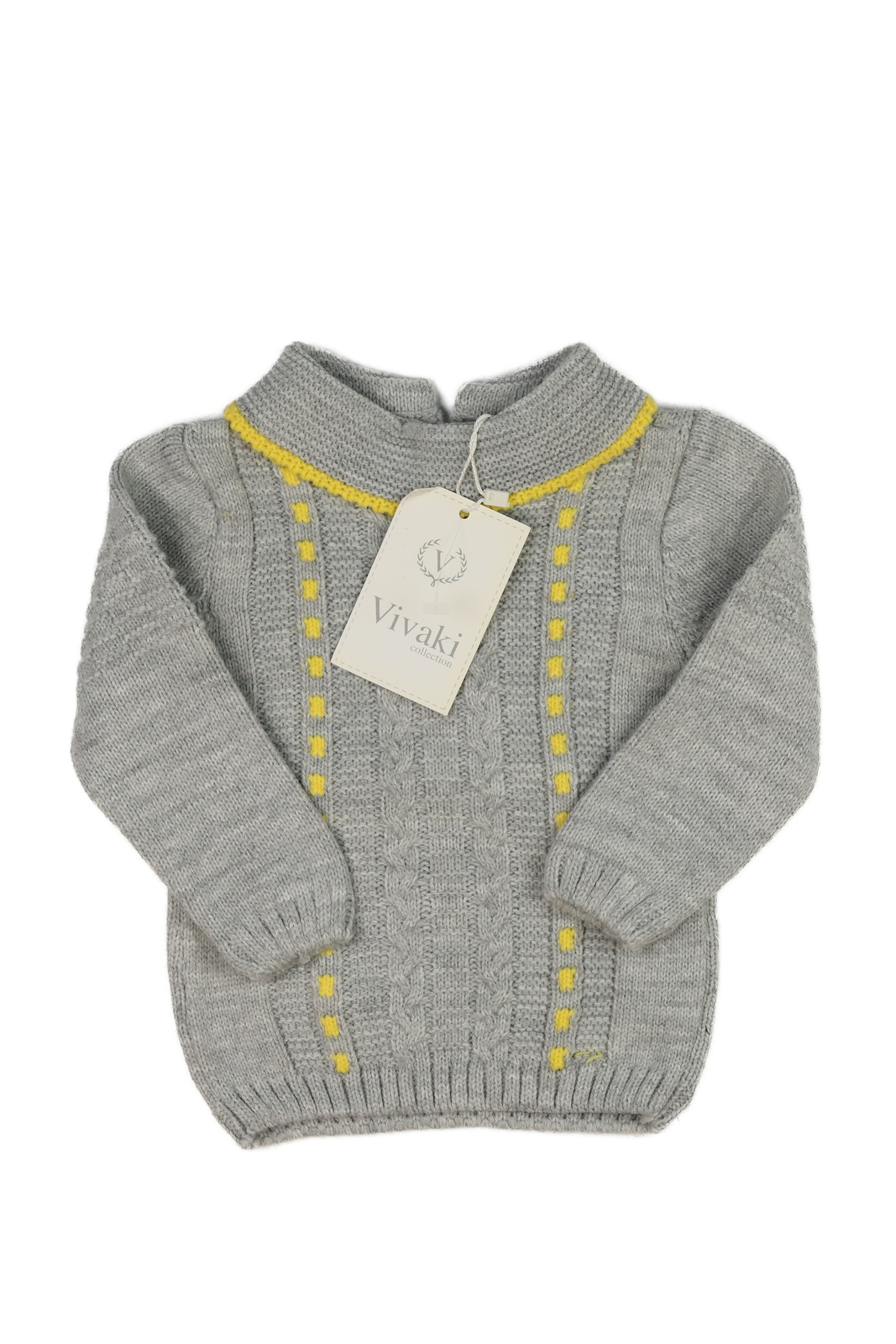 Nový šedo-žlutý svetr s límečkem