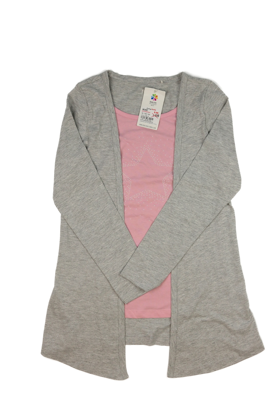 Nový šedý kardigan s růžovým všitým trikem (159 Kč)