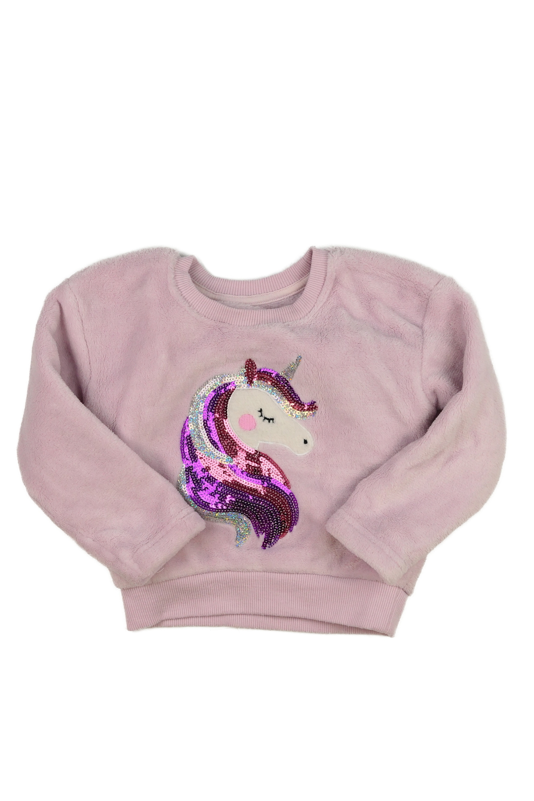 Růžová chlupatá mikina s jednorožcem Nutmeg (89 Kč)