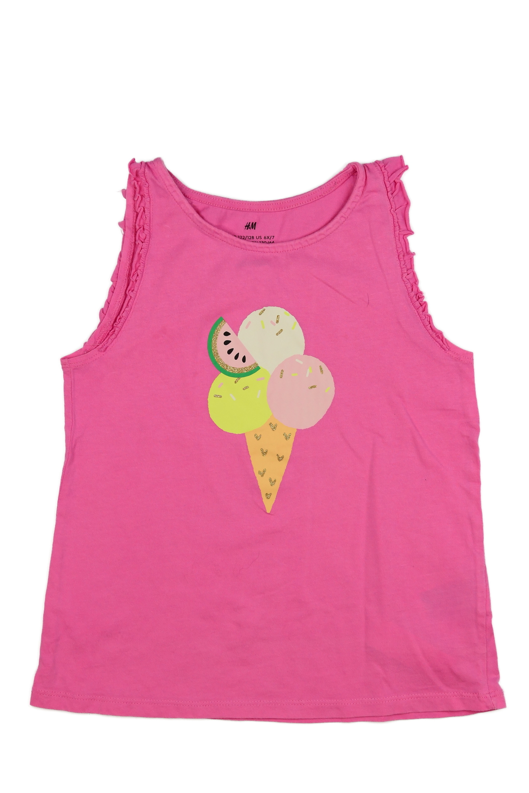 Růžové triko se zmrzlinou a volánky H&M (129 Kč)