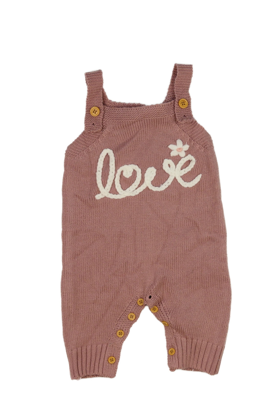 Růžový pletený overal s nápisem