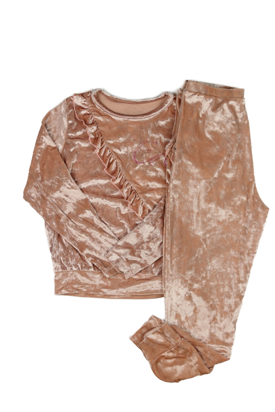 Růžový semišový set s volánky (209 Kč)