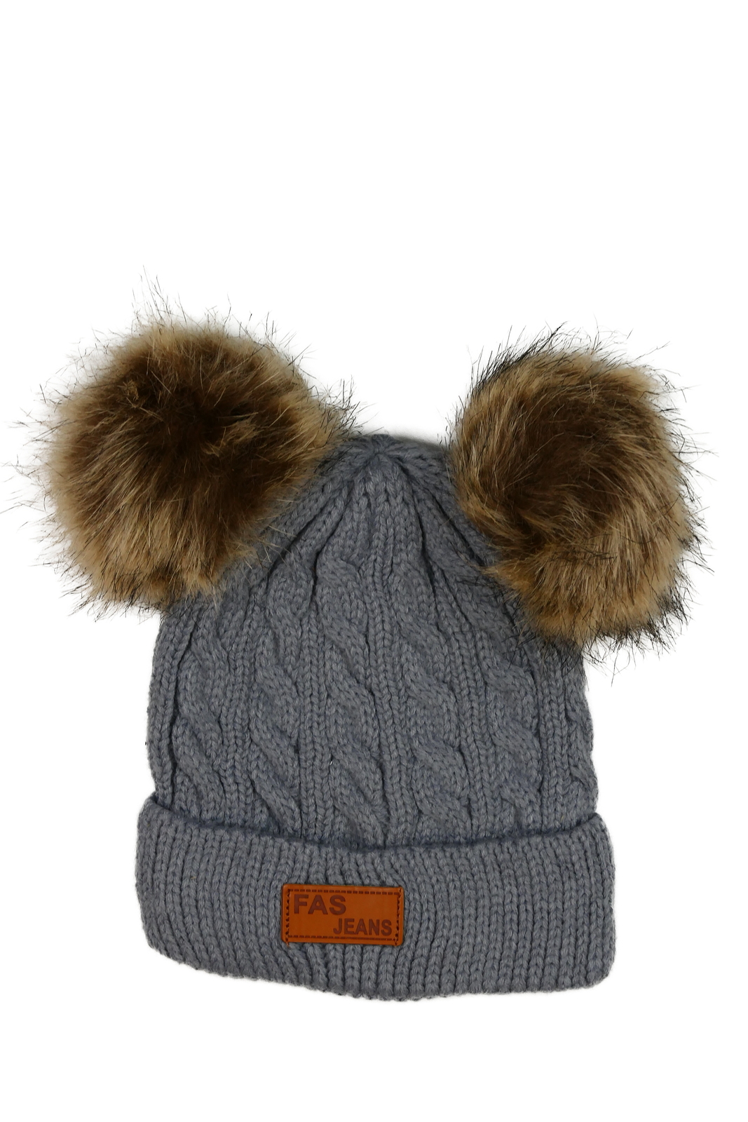 Šedá čepice s bambulemi