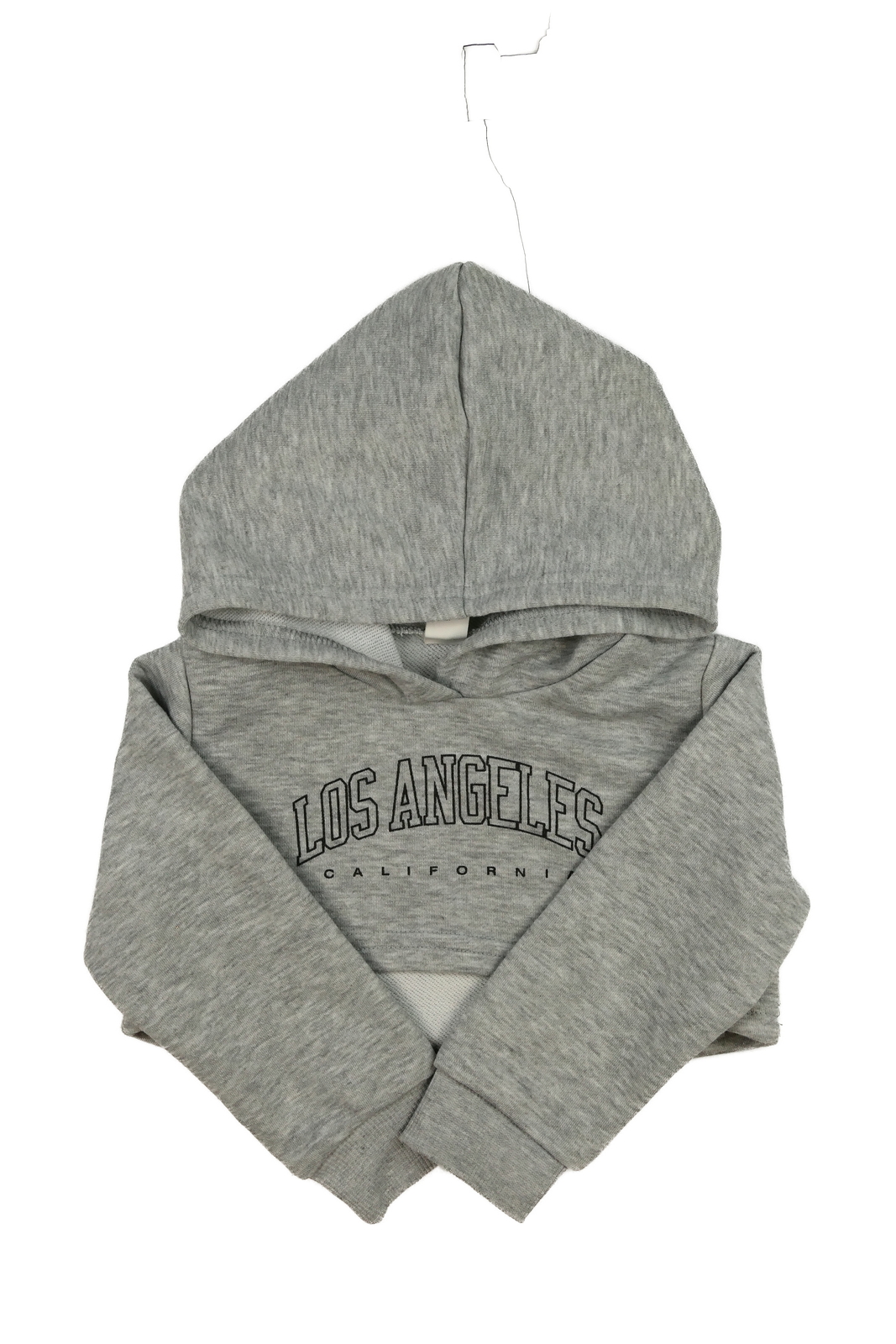 Šedá melírovaná crop mikina s nápisy (89 Kč)