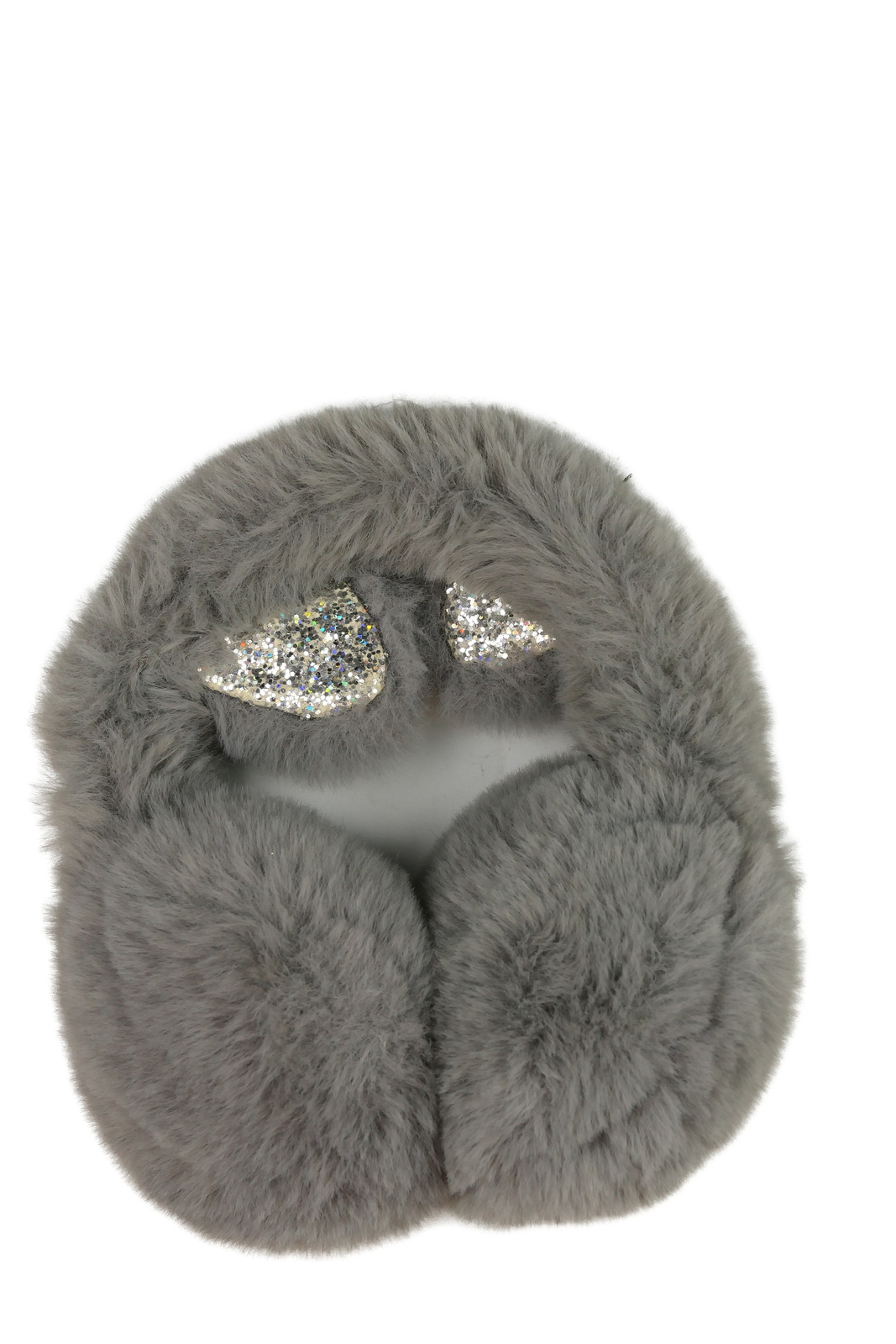 Šedé chlupaté klapky na uši