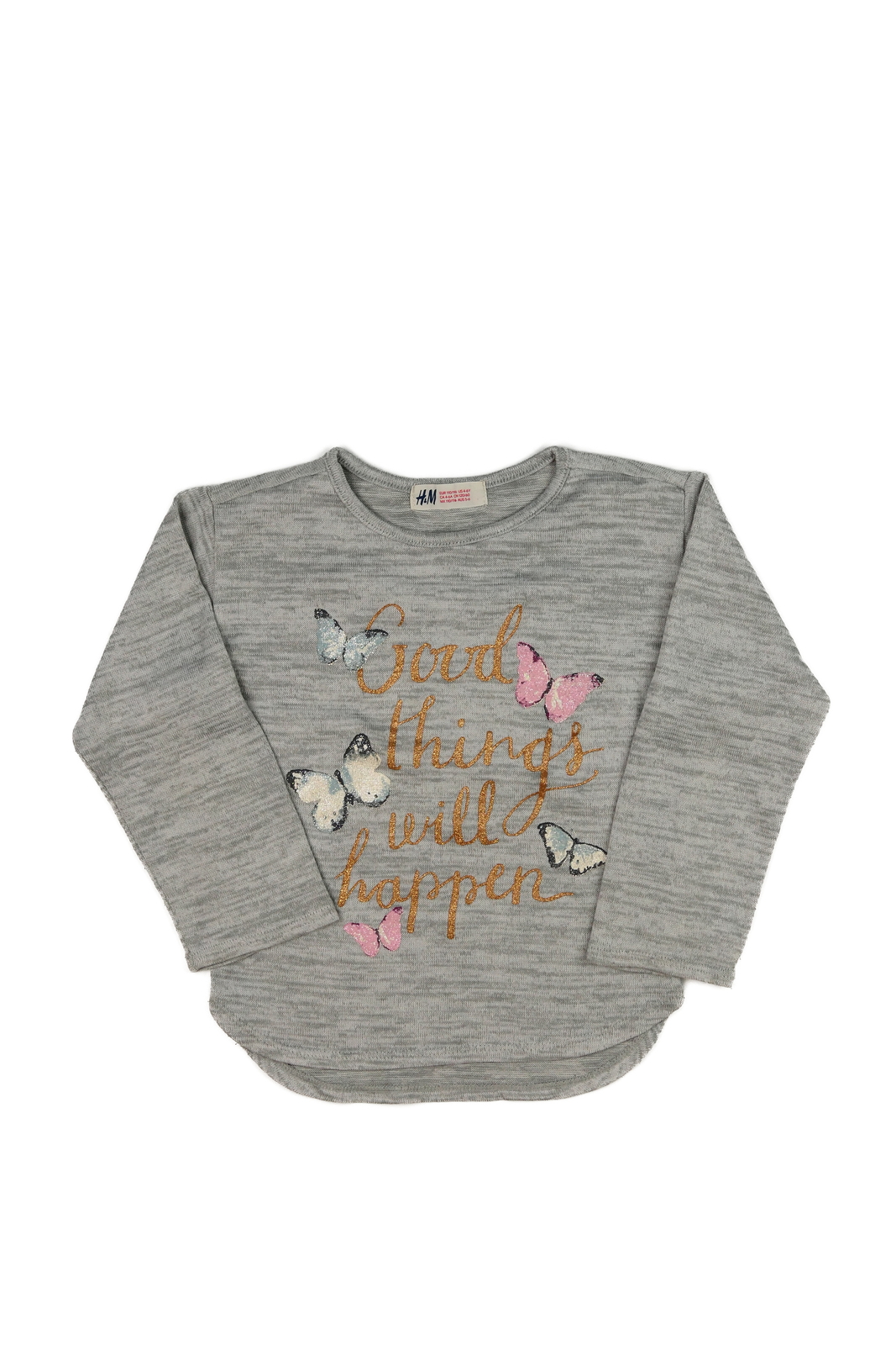Šedé melírované triko s motýlky H&M (89 Kč)