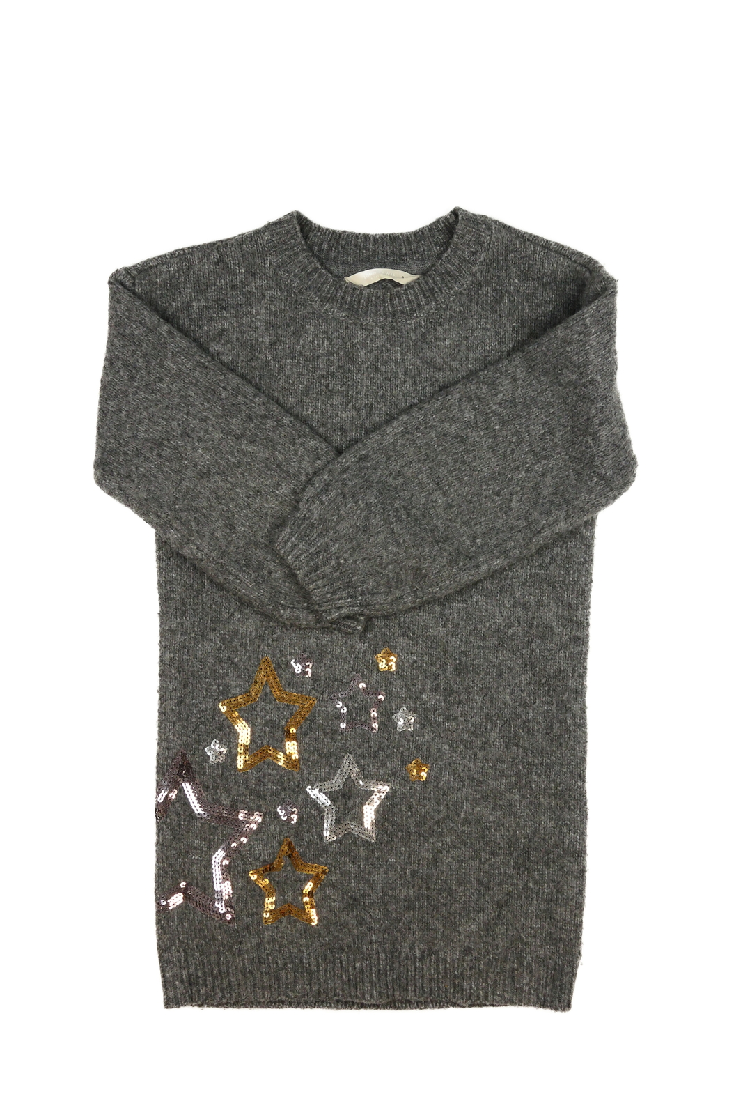 Šedé pletené šaty s flitrovými hvězdami John Lewis (189 Kč)