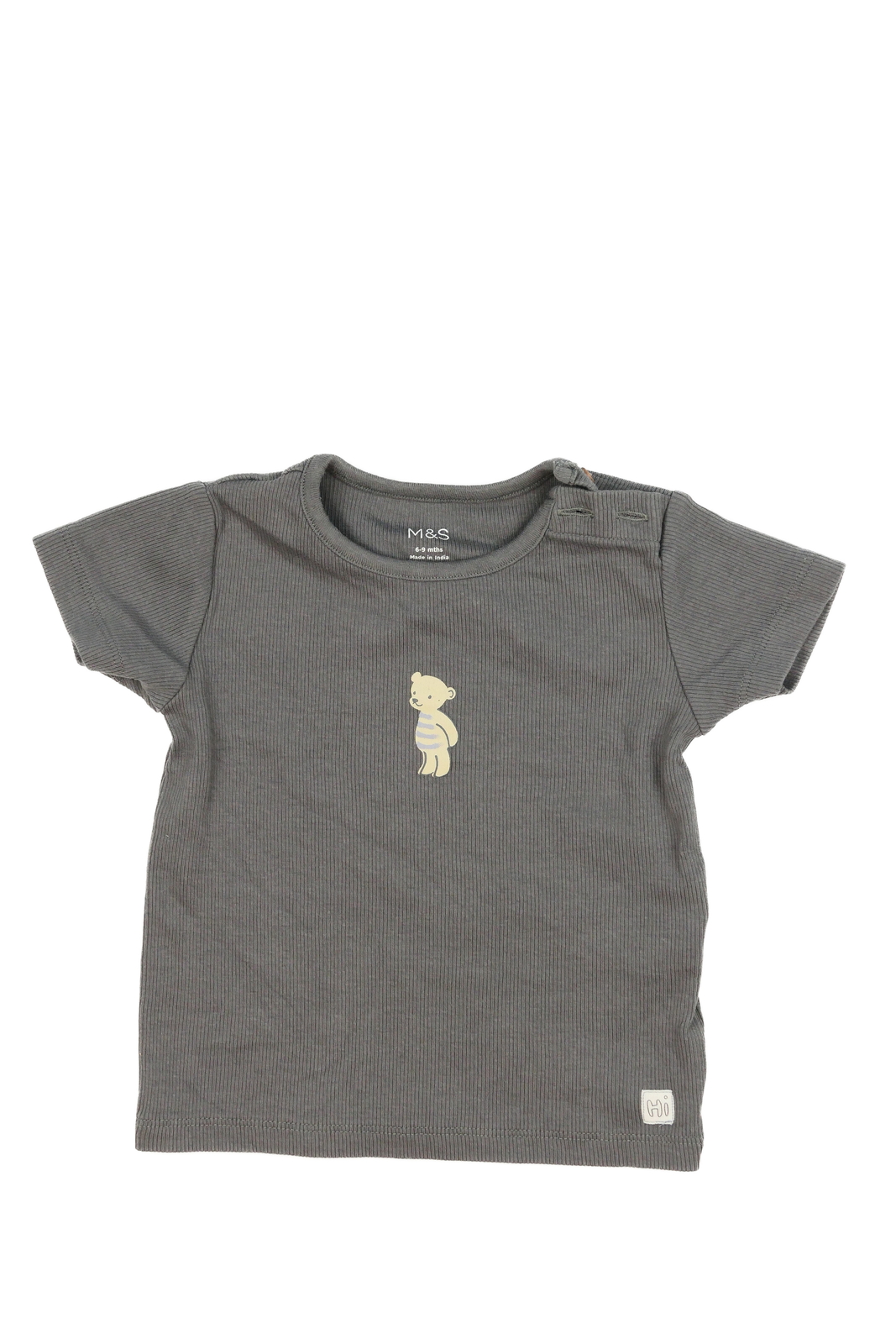 Šedé žebrované triko s medvědem M&S (49 Kč)