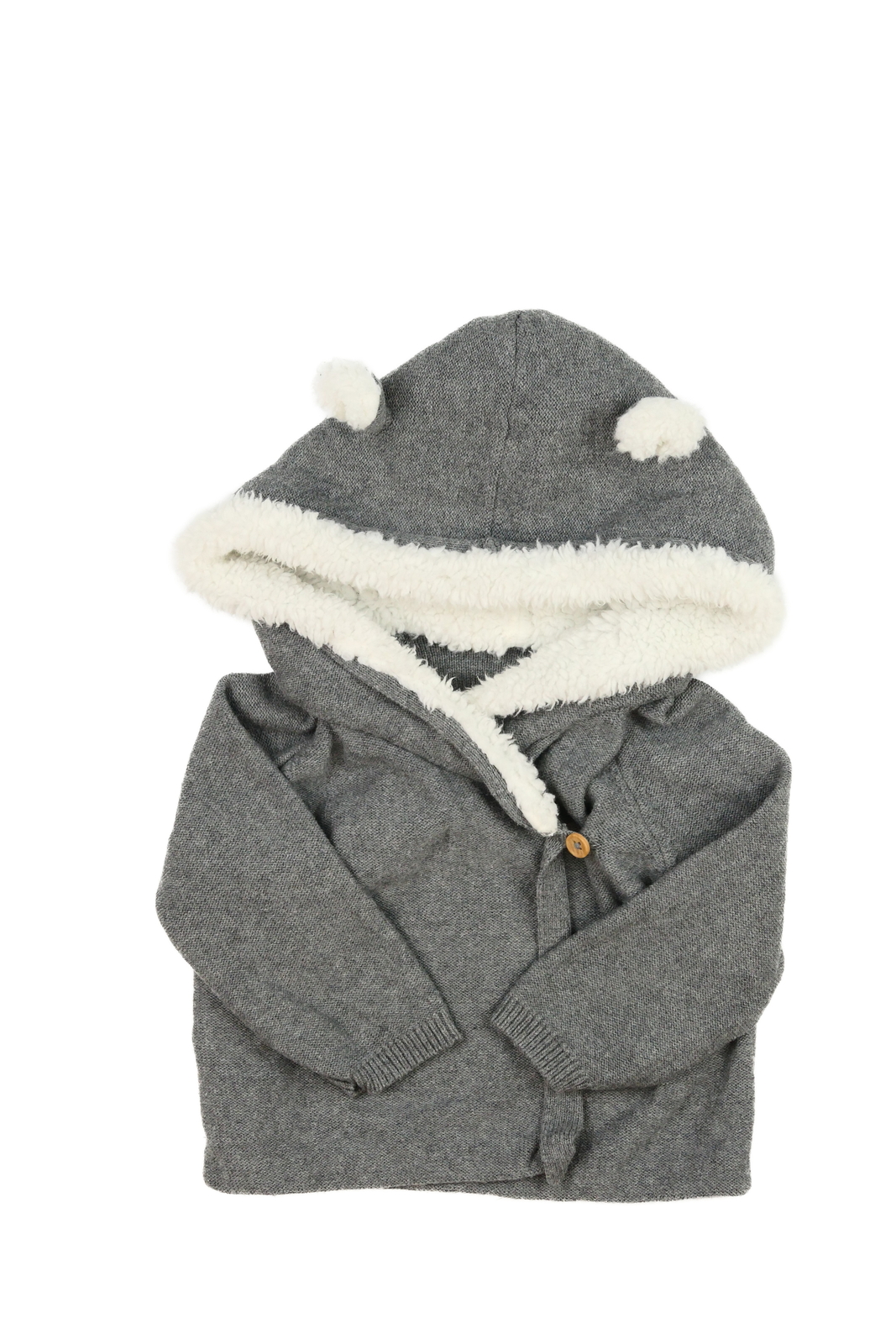Šedý melírovaný svetr s oušky (89 Kč)