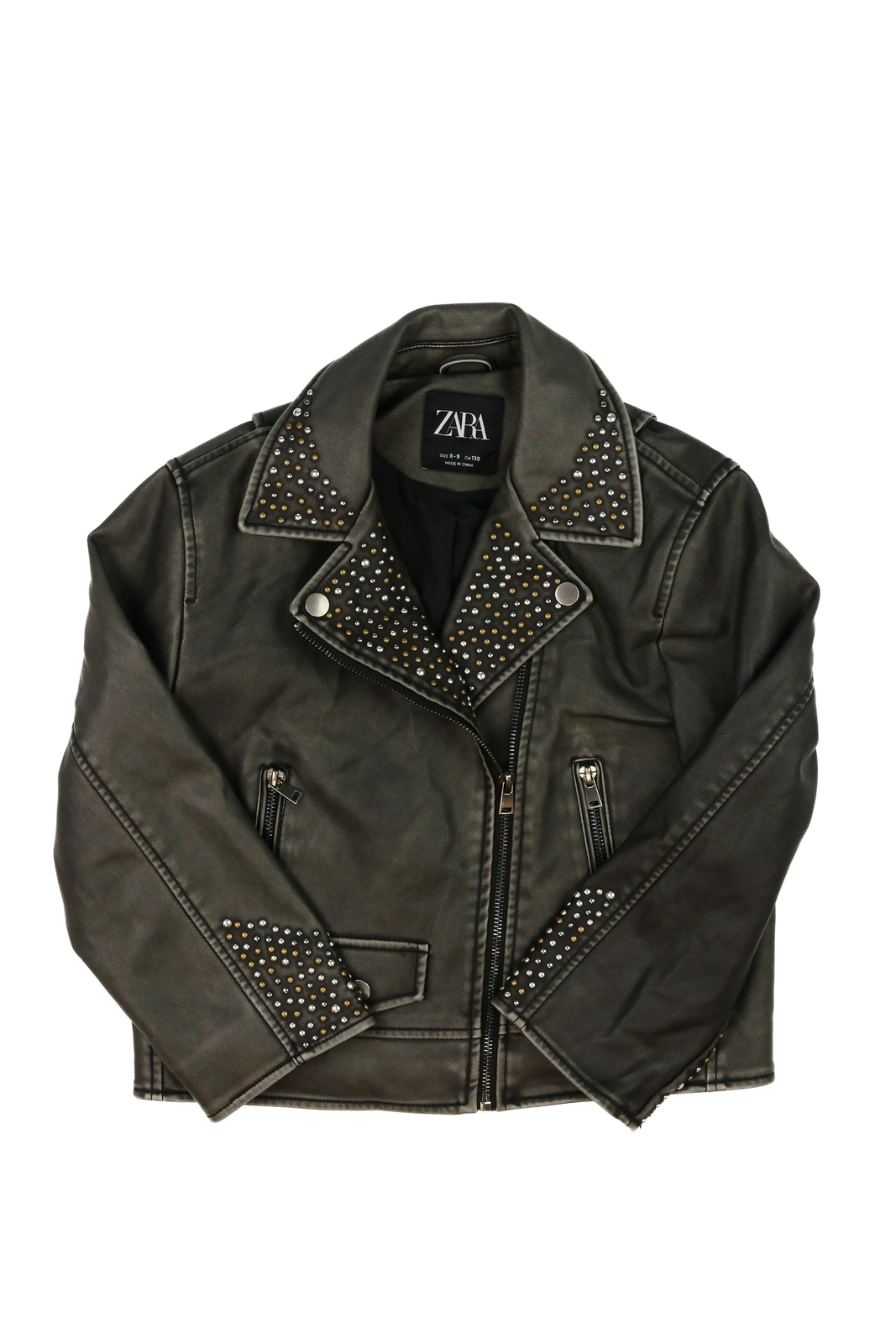 Tmavá koženková bunda s kamínky Zara