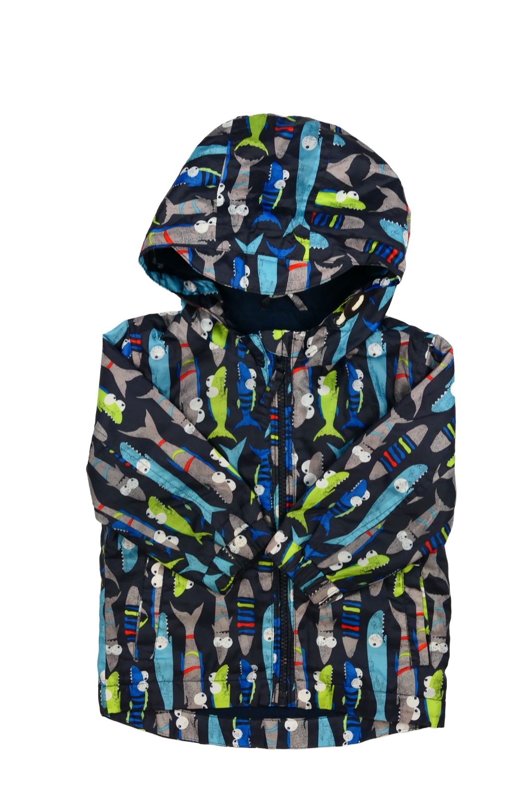 Tmavá přechodová bunda se žraloky