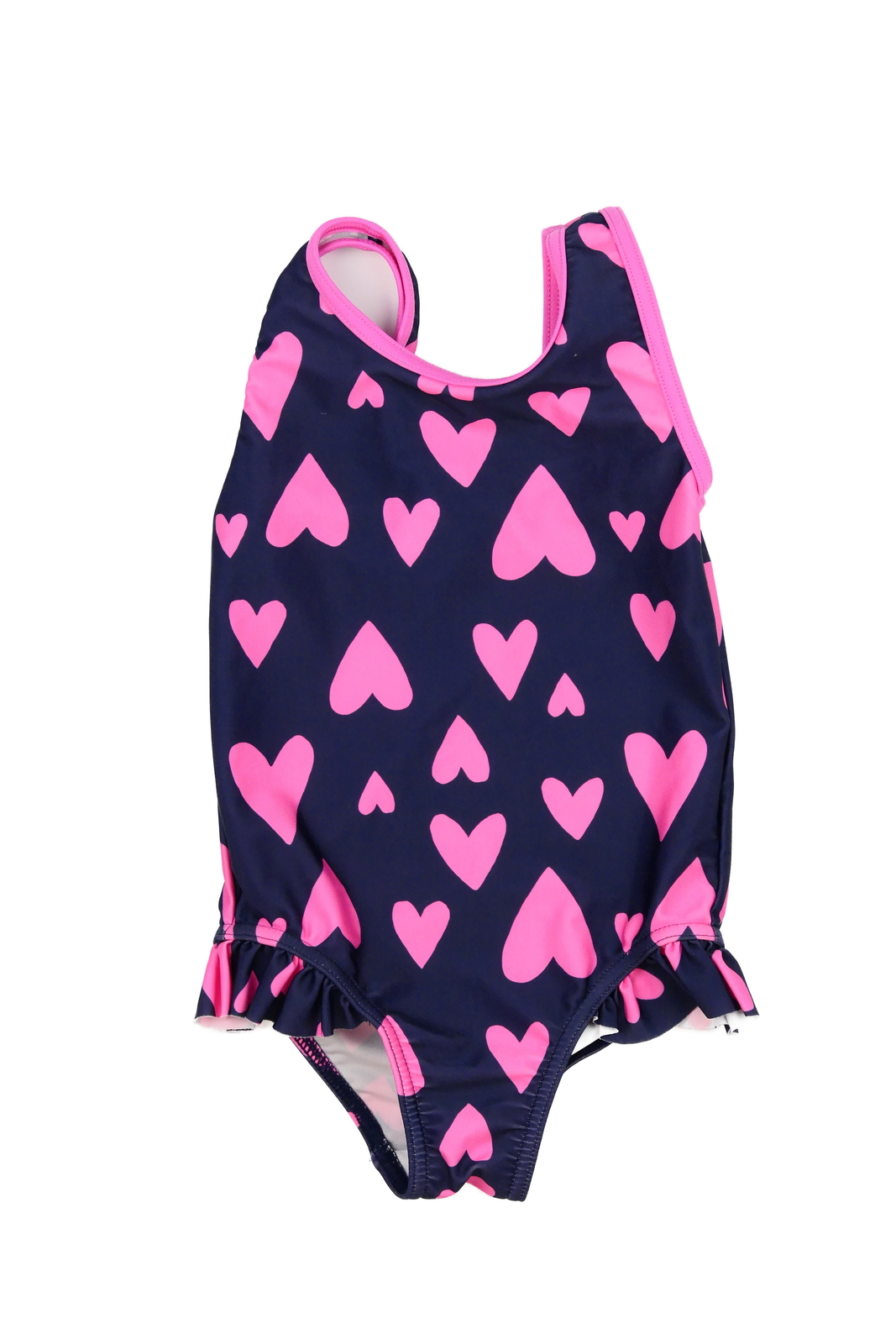 Tmavě modré plavky s růžovými srdci George (89 Kč)