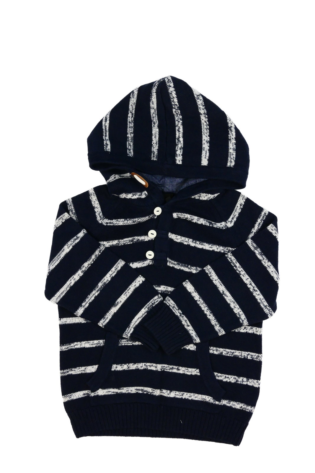 Tmavě modrý pruhovaný svetr s kapucí Next (89 Kč)