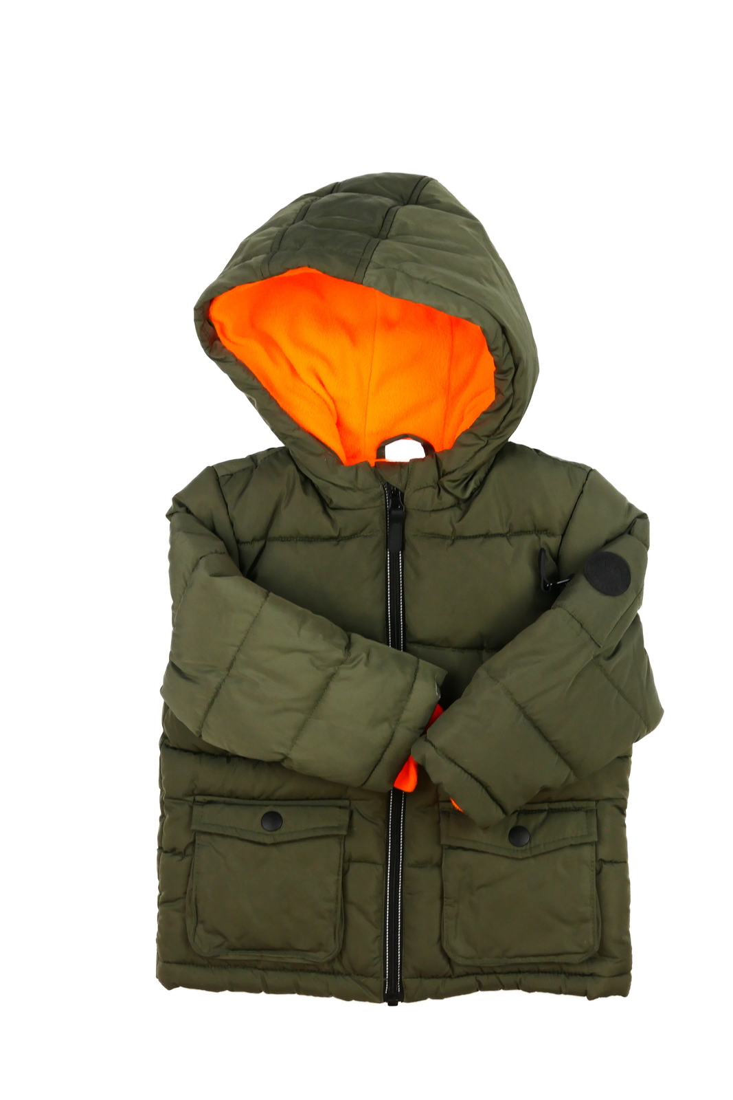 teplá podšívka pod bedry, žmolky na konci rukávů a na levém rukávu flíček