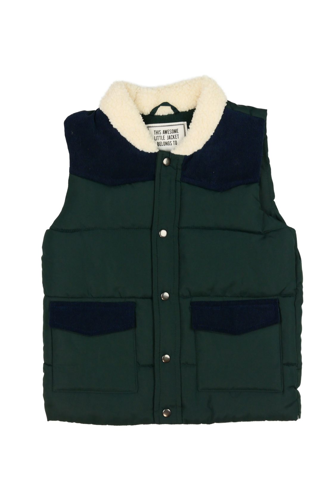 Zelená zimní vesta s modrými detaily